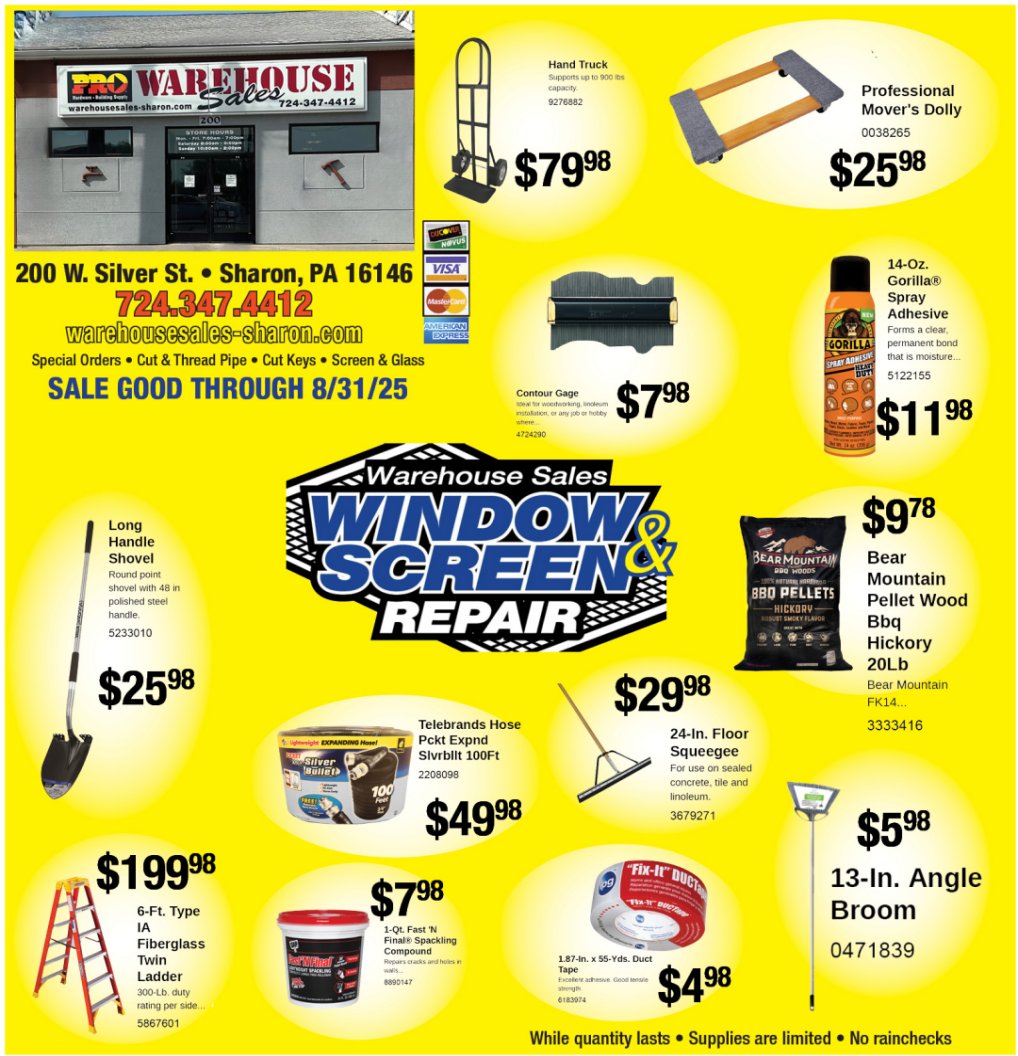 Click the images above to enter your address and get directions to Warehouse Sales in Sharon, PA.