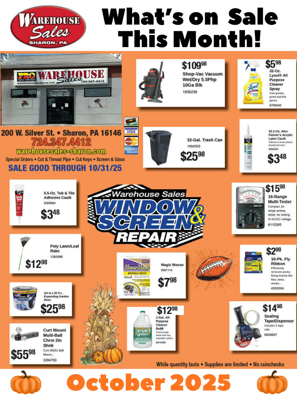 Click the images above to enter your address and get directions to Warehouse Sales in Sharon, PA.